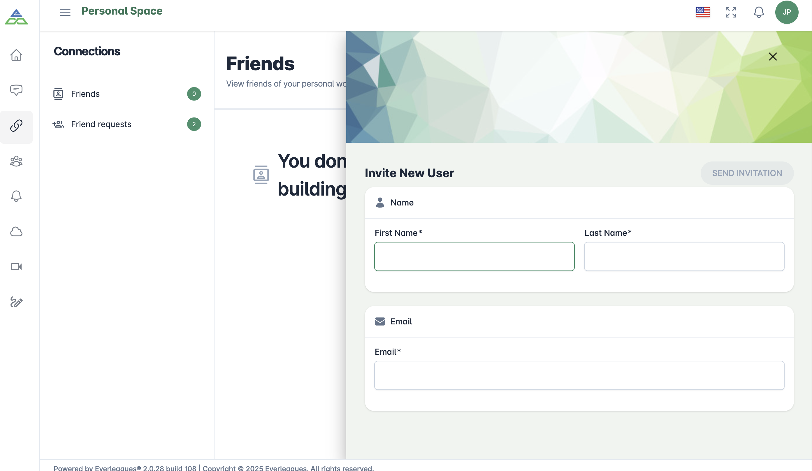 Though EverLeagues is primarily designed for business use, we've crafted a Personal Space for each user. This dedicated space allows you to invite your personal contacts, store important files, and more, all in a secure environment completely separate from all your other organizations.