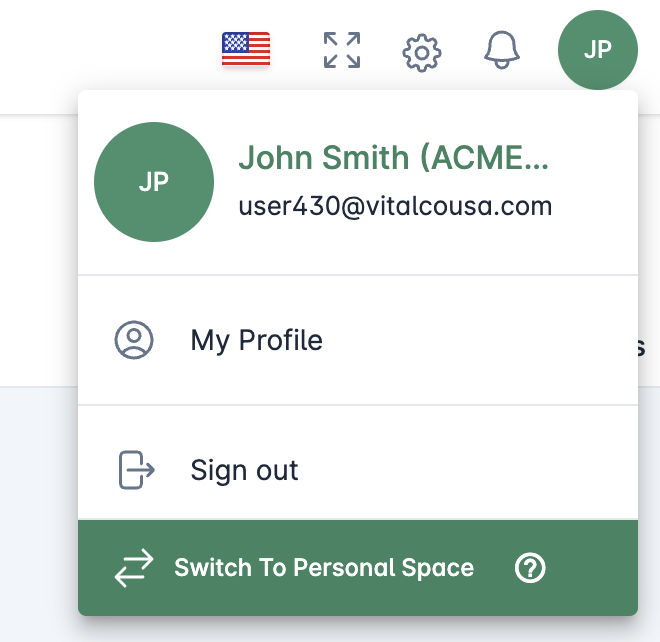To access your Personal Space, click on the Profile icon in the top right, select switch to Personal Space.